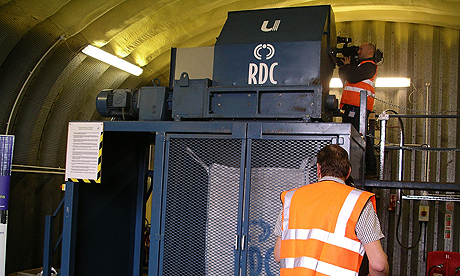 After years of debate, hours of a parliamentary time and millions of pounds, I saw minister Damian Green feeding some of the hard drives behind the ID cards system into an industrial shredder in Essex. It was certainly an unusual press trip – see images below.